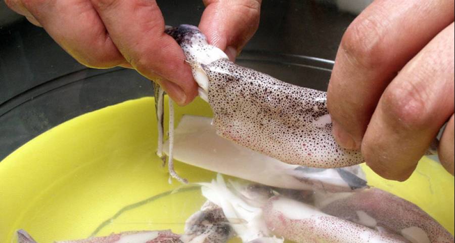 Para limpiar los chipirones, primero debes sacar la pluma, tirando suavemente de ella.