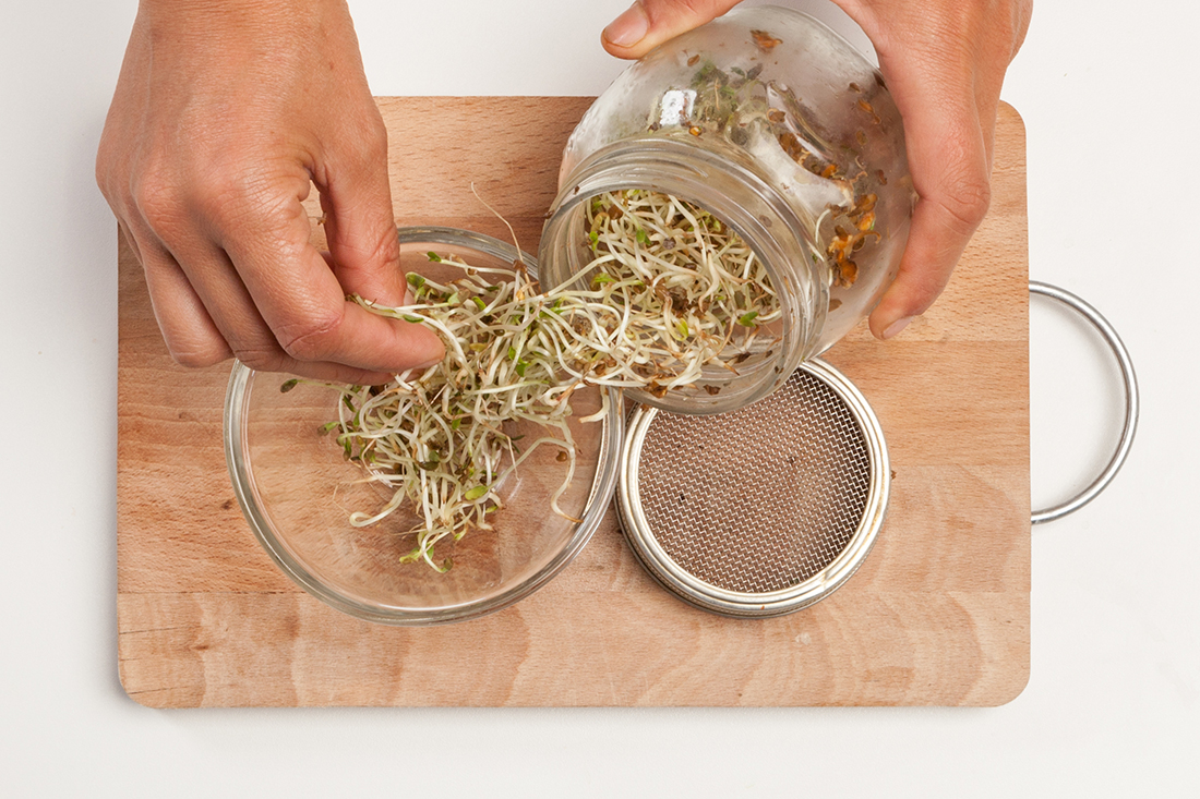 Los brotes son un gran complemento a nuestras ensaladas. Normalmente los podemos encontrar en el supermercado envasados pero, si los compras frescos y te sobran, lo mejor es ponerlos en un bote de cristal en tu cocina. Así conservarán mejor su sabor y estarán listos para comerlos en cualquier momento.