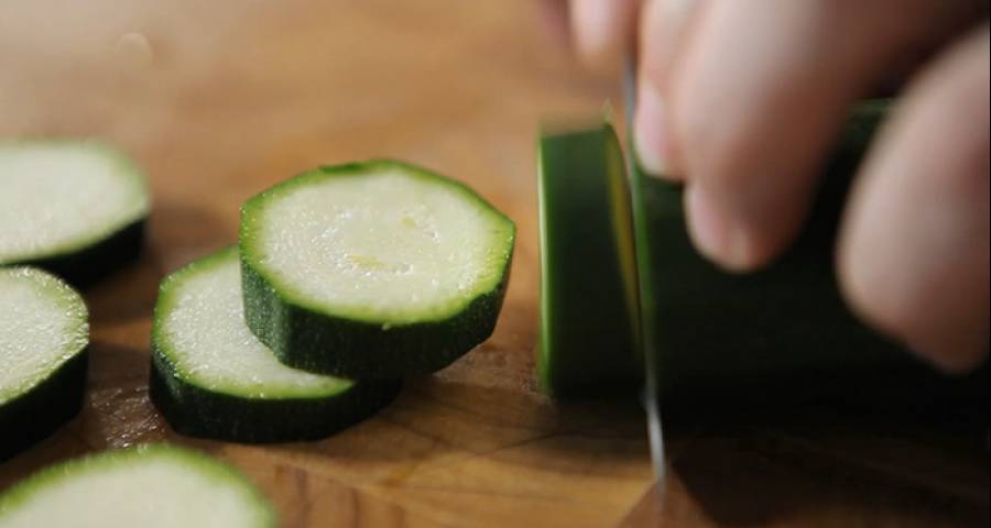 Cuando se trocea, sobre todo si es pequeño, el calabacín suele desprender una sustancia ligeramente pegajosa. Si te sucede, lávalo con agua abundante para eliminarla.