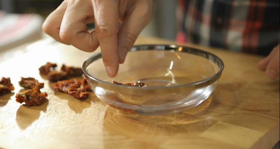 Hay que hidratar los tomates secos para poder consumirlos: ponlos en agua fría y deja que se ablanden. Escúrrelos y ponlos en remojo con un buen aceite. De esta manera, los podrás conservar hasta el momento de usarlos, y mientras, se aromatizarán de aceite.