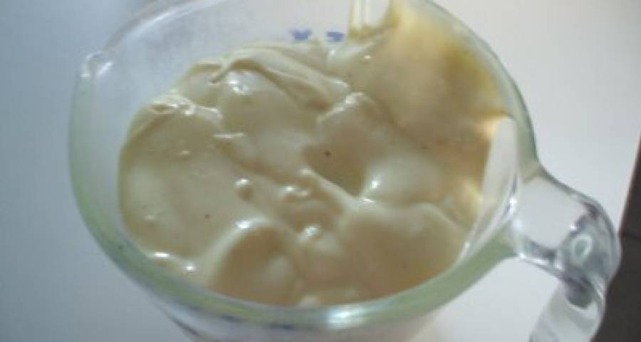 Pon en el vaso del minipimer una medida de leche desnatada y dos de aceite, un poquito de sal y bate hasta que haya cuajado , si es necesario añade más aceite.