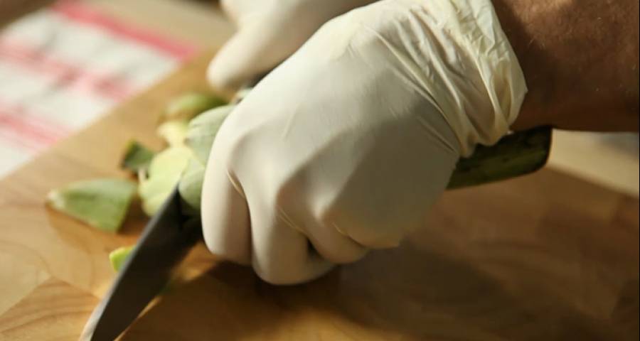 Para pelar algunas hortalizas, como las habas y las alcachofas, usa guantes de látex y evitarás mancharte las manos. Las habas se oxidan rápidamente en contacto con el aire, por lo que es conveniente pelarlas y cocerlas sin demora.