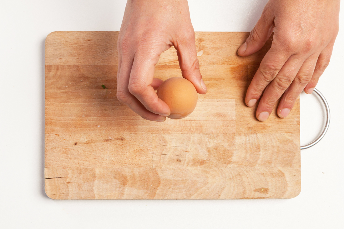 Como los huevos duros pueden ser algo difíciles de pelar puedes poner en práctica este sencillo truco. Golpéalos con suavidad contra algo duro, como una madera, y ve rompiendo la cáscara con los dedos con el fin de dejar entrar el aire. De esta manera, te será mucho más fácil pelarlos.